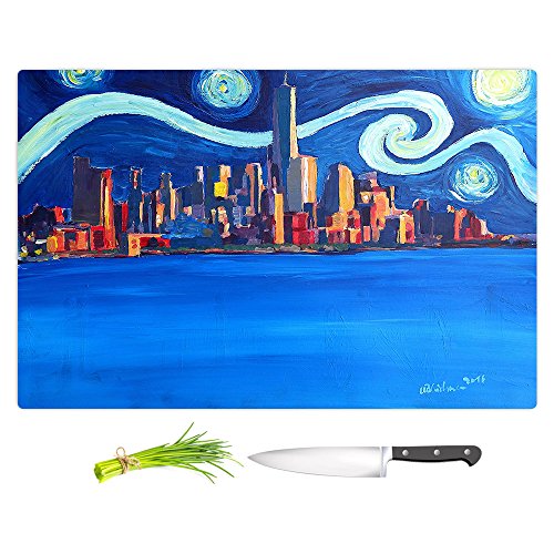 DiaNoche Designs CB-MarkusBleichnerStarryNightNYCity1 Artist Markus Bleichner-Starry Night in New York City Van Gogh Cutting Boards from, Small 11" x 8"