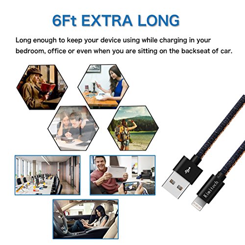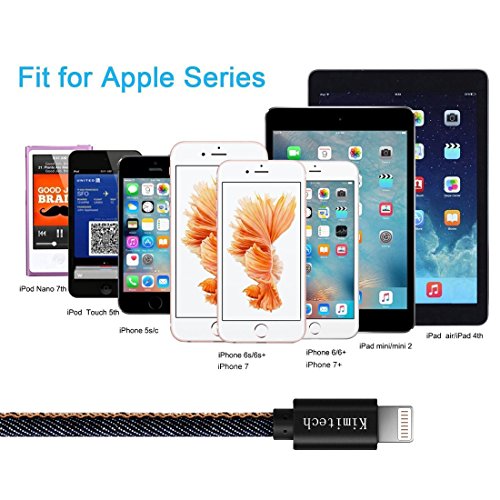 Kimitech iPhone USB Cable Hand-sewn Cowboy Leather to USB Charge and Sync Cable for Apple iPhone 7/6s plus/5c/5s/iPad Air/Mini/iPod Nano/Touch and Compatible with iOS 8 9 10 (2-Pack 3ft 6ft ) (Blue)