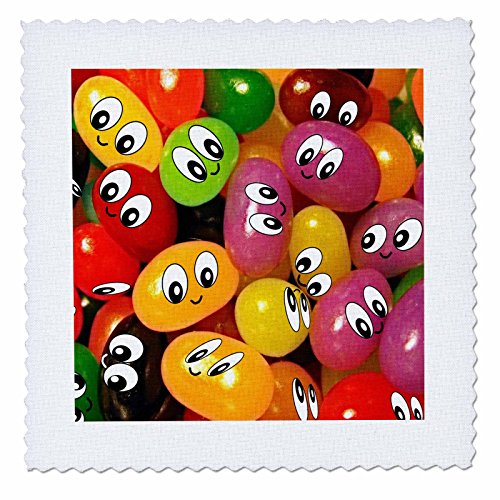 3dRose Cute & Colorful Happy Jellybeans - Multicolor Smiley Face Sweets - Smiling Adorable Candy Foods - Quilt Square, 6 by 6-Inch (qs_58326_2)
