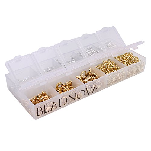 BEADNOVA Silver/ Gold Plated 160pcs Lobster Claw Clasps + 1000pcs Open Jump Rings Value Pack Box Set