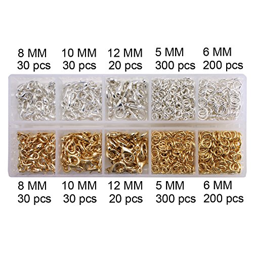 Size & Quantity: Total 160 pcs of 8mm, 10mm,12mm Lobster Craw Clasp + 1000 pcs of 5mm, 6mm Open Jump Ring (Detial show on photo)