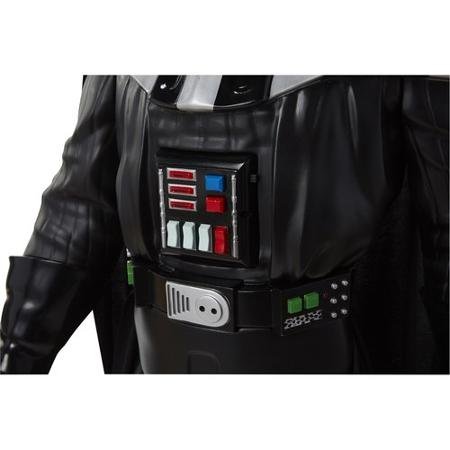 -. Feature : Officially licensed kids' Darth Vader Battle Buddy Motion detector triggers sound clips and breathing noises / Friend and foe play modes 7 points of articulation / Signature lightsaber hilt on belt Real fabric cape and metal chain / 48" in height / Requires 3 AA batteries (included)