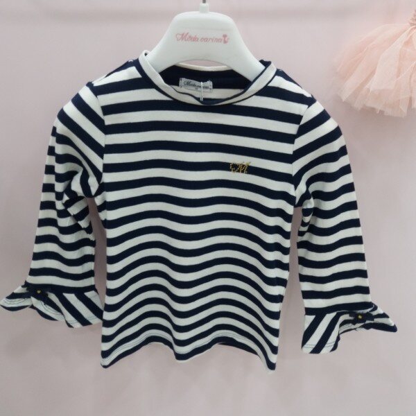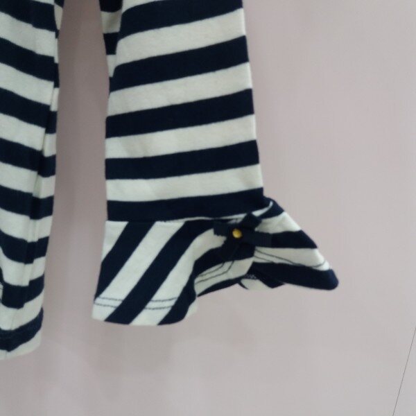 기본핏의 스트라이프7부소매티셔츠입니다.깔끔한 라인과 컬러감으로 어떤 하의 아우터와도 코티가 용의합니다.소매 밑단억 절개라인을 주어 후레아 셔링으로 러블리함을 표현했습니다~