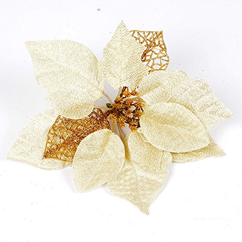 Pack of 12 Glitter Artificial Wedding Christmas Flowers Glitter Poinsettia Christmas Tree Ornaments (Gold)