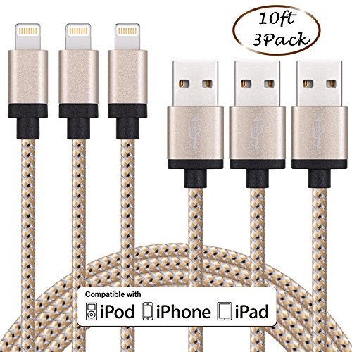 -. Title : EverDigi 3Pack 10ft Nylon Braided Lightning to USB Charge & Sync Cable Cord with Aluminum Connector Compatible with iPhone 7/7Plus,6/6s/6plus/6splus, 5c/5s/5/SE, iPad Air/Mini, iPod Nano/Touch (Gold)