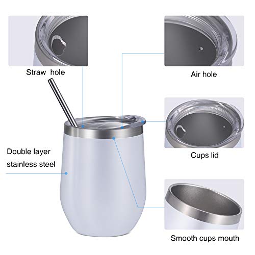 Material: the wine cups are made of 304 stainless steel, with a removable ABS lid of where contains a drinking strawing hole; Color: white; Capacity: 12 oz (outer gallbladder)