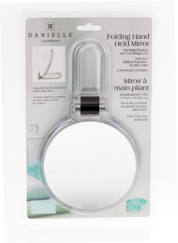 Danielle Round Folding Hand Held Mirror, 10x Magnification/True Image, Clear Acrylic