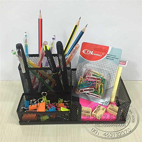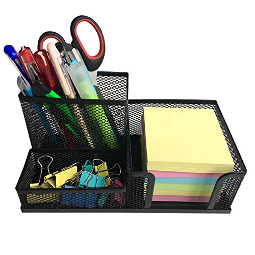 Desk Supplies Organizer Caddy Mesh Collection Pencil Holder, Black (square black)