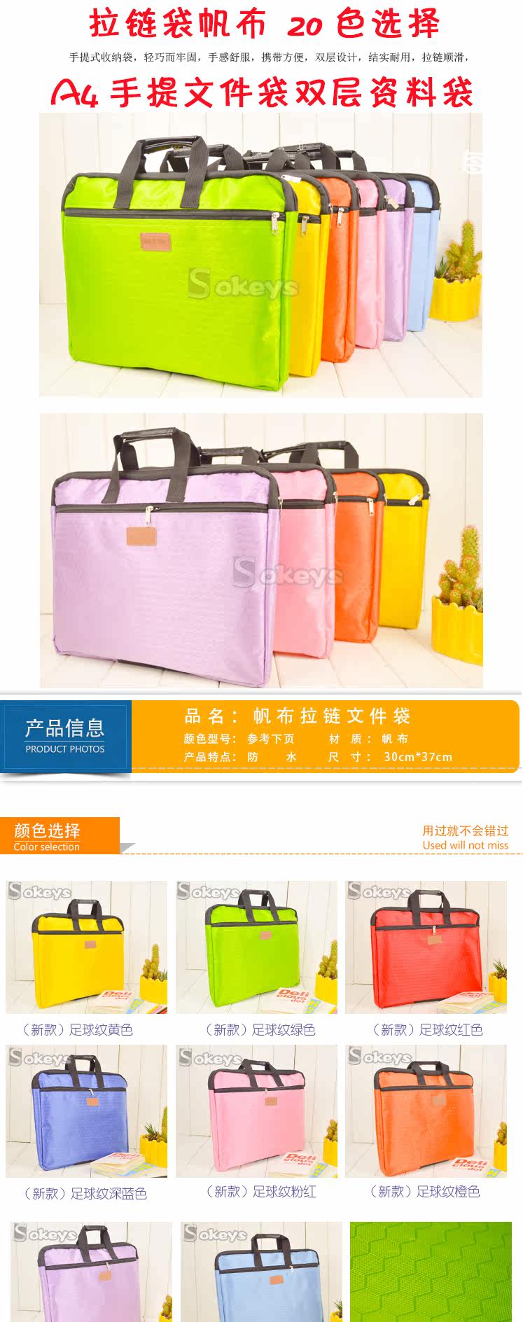 韩国拉链帆布袋 A4手提文件袋双层资料袋 拉链袋文件包事务包