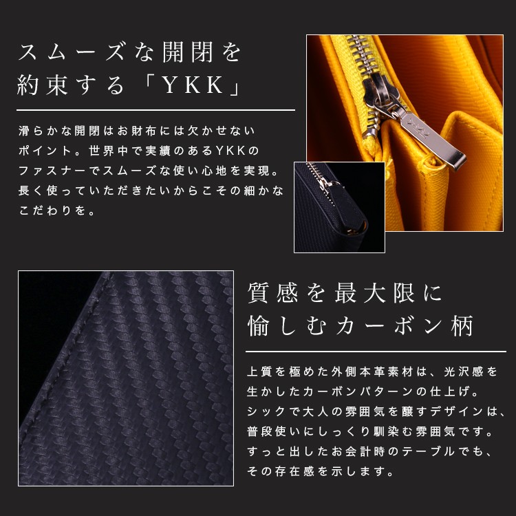 高級感のあるカーボンレザーにこだわった本革長財布。L字ファスナーのコインケースでレジでもたつく心配もなし。カードも12枚入る大容量です。最高級のカーボンレザーを使用。カラーバリエーションは6色!横幅:19.5cm高さ:10cmマチ:2.5cmカード入れ:6枚×2フリーポケット:2ヶ所札入れ:3ヶ所小銭入れ:L字ファスナー付き