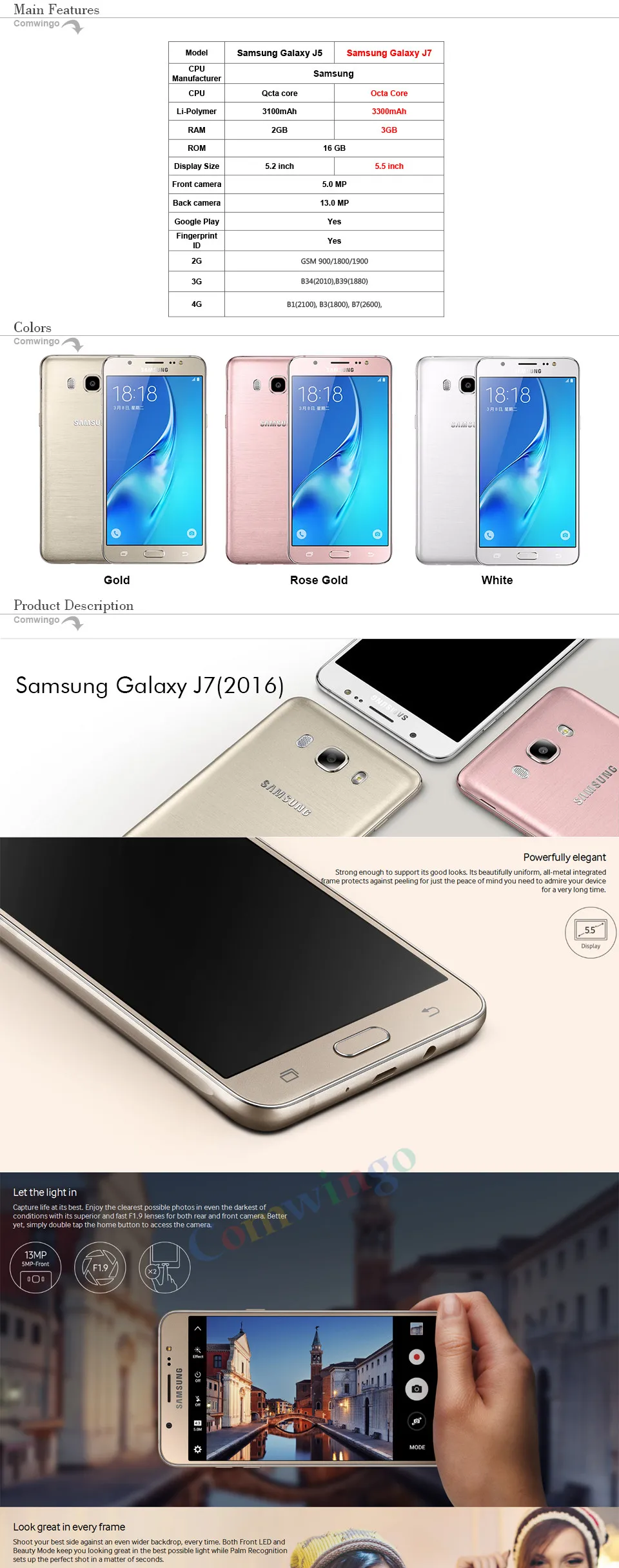 2.Original Unlocked Samsung Galaxy J3 Pro J3110 4G LTE Phone Dual SIM Quad Core Snapdragon 410 5.0 8MP 1280x720 NFC Cell Phones