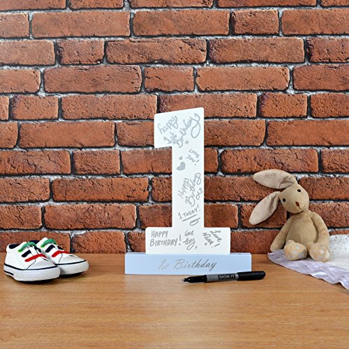 -. Binding : Kitchen -. Brand : ING -. Color : Blue -. EAN : 9320383464871 -. Feature : Signature Number for first birthday, with blue base / Sign and write birthday messages on this special birthday memento / Black marker included. Base features pen holder for convenience. / Text on base reads "1st Birthday" in silver / Made from wood. Measures approximately 29 cm x 22 cm -. IsAdultProduct : 0 -. Label : ing -. Manufacturer : ing -. ProductGroup : Baby Product -. ProductTypeName : BABY_PRODUCT -. Publisher : ing -. Studio : ing -. Title : 1st Birthday Signature Number With Pen For Baby Boy - Blue