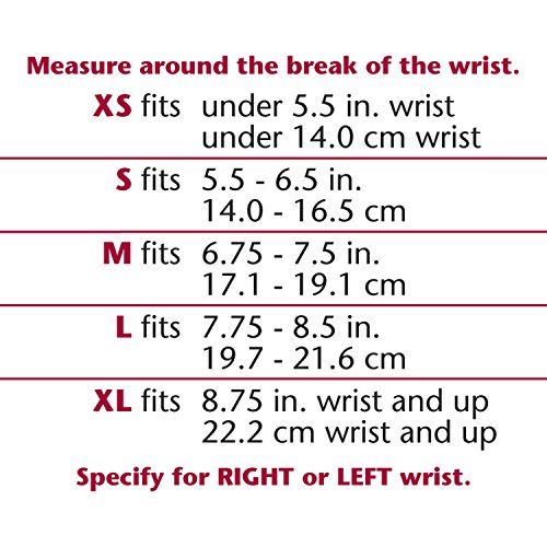 - Comes in Left and Right options. Measure around the break of the wrist. Available Sizes: X-Small (Under 5.5 Inches), Small (5.5-6.5 Inches), Medium (6.75-7.5 Inches), Large (7.75-8.5 Inches), and X-Large 8.75+ Inches).