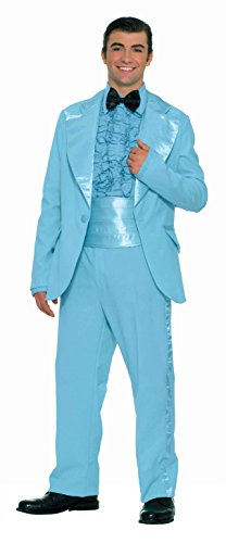 -. Feature : Powder blue retro tux costume / Jacket, shirt front, bow tie, cummerbund, and pants / Offered in adult standard (men to size 42 chest, women to dress size 16) or extra-large (men up to size 48 chest, women up to dress size 18) / Search forum fabulous 50's for wigs, costume jewelry and many other great accessories / From funny to frightening forum has it all