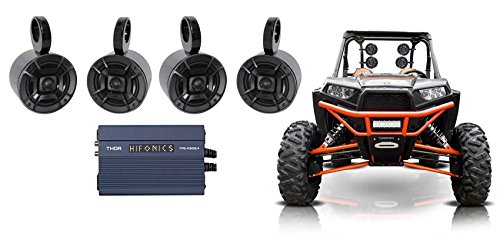 -. Feature : Package Includes : (2) Pairs of Polk Audio DB522 5.25" 1200 Watts Total Car, ATV, Motorcycle, or Boat Speakers + (2) Pairs of Rockville MAC525B 5.25" Black Aluminum Wakeboard Tower Speaker Pod Enclosures + Hifonics TPS-A350.4 350 Watt 4-Channel Marine Amplifier for Polaris RZR, ATV, UTV, and Cart / (2) Polk Audio DB522 5.25" 600w Car Audio Marine/ATV/Motorcycle/Boat Speakers. High performance audio upgrade that delivers signature quality sound that goes beyond OEM factory systems. Marine certified with IP65 rating (water- and dirt-resistant) and tested for salt-fog, UV and humidity. Polypropylene and UV tolerant cone with waterproof inner and outer surrounds. Simple drop-in installation for any vehicle including cars, boats, ATVs-you name it. / Driver Compliment: 5.25" (133.35 mm). Tweeter Compliment: 0.75" (19 mm). Cut-Out Diameter: 4.76" (121 mm). Mounting Height: 0.31" (8 mm). Driver Mounting Depth - Bottom Mount: 2.01" (51.2 mm). Driver Mounting Depth - Top Mount: 1.74" (44.2 mm). Grille - Height: 17.55 mm. Driver Complement Mid / Woofer - Diameter: 5.25" (133.35 mm). Driver Complement Tweeter - Diameter: 0.75" (19 mm). Max Sensitivity: 91 dB. Nominal Impedance: 4 ohm. / Pair of Rockville MAC525B 5.25" black aluminum can wakeboard tower enclosures. Made of high quality 6061 aircraft grade aluminum. Beautiful black powder-coat finish. 100% waterproof and fully marinized against salt and fresh water conditions. Internally wired for clean install-no exposed wires or terminals. High efficiency design features the perfect airspace for 6.5" speakers. Rugged universal mounting clamps made of 6061 aluminum. / Hifonics TPS-A350.4 350w 4-Channel Marine Amplifier For Polaris RZR/ATV/UTV/Cart. Marine Grade Protection: YES - Amplifiers are ABYC & ASTM certified which defines that marine amplifiers must use conformal coated PC boards to resist corrosion from salt spray & moisture.. Pre-Amp Circuitry: Low Noise Pre-Amplifier Stage - Special preamplifier reduces incoming noise from source units dramatically improving sound quality.