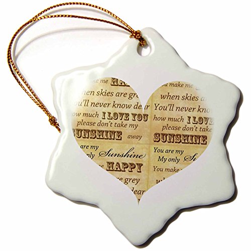 3dRose orn_110495_1 You are My Sunshine Heart Inspirational Art Snowflake Porcelain Ornament, 3-Inch