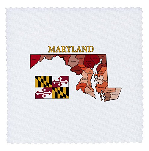 3dRose Flag and Map of Maryland with Each County Colored and Labeled - Quilt Square, 6 by 6" (qs_192453_2)