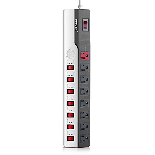 BESTEK 8-Outlet Power Saving Power Strip with Individual Switch, Master Control Surge Protector with 6.6-Foot Heavy Duty Extension Cord and 4.2A Dual Auto USB Charging Ports