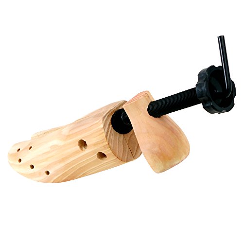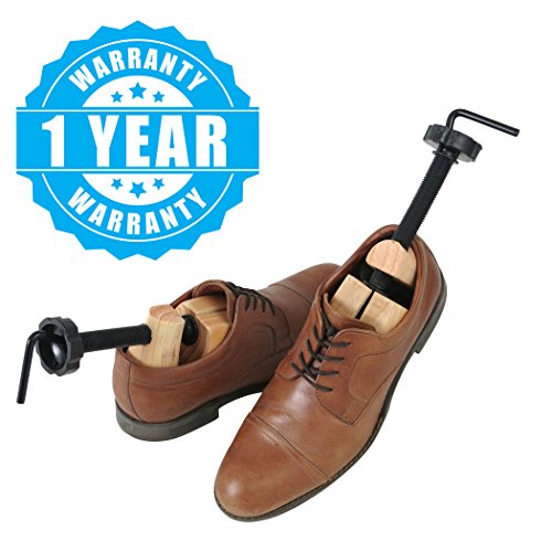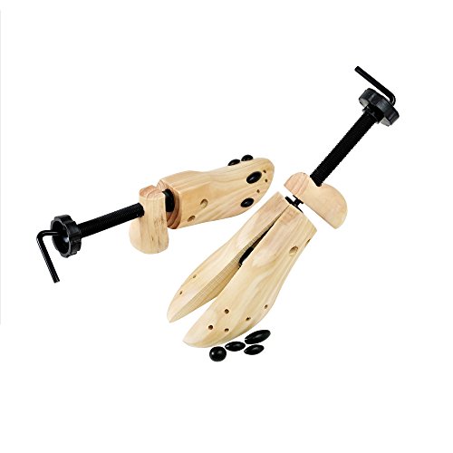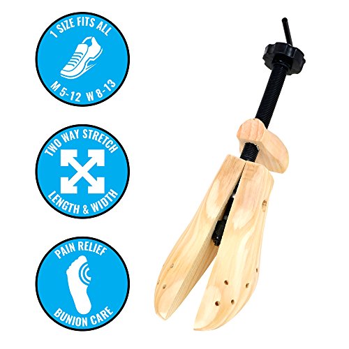 2 Pack Wooden Adjustable Shoe Stretchers (US Men's Size 5-12; Women's Size 8-13) Make your own custom fit shoes These adjustable shoe stretchers help make every pair of shoes your most comfortable pair of shoes. Whether you suffer from bunions, are prone to getting blisters, or just have wide feet, these shoe adjusters were designed to help you. Simple design and functionality To adjust the width of your shoes simply place the stretcher inside the shoe and turn the handle to build pressure. The stretcher will start to expand and widen inside of your shoe. Once you have adjusted the shoe stretcher to the desired shape, all you have to do is leave the expanded stretcher in your shoe overnight or for a full 24 hours. The longer you leave the stretcher in your shoe the better results you will see. To adjust the length of your shoe, you will need to adjust the lengthening knob until the block heel of the stretcher extends to the length you need. An additional step you can take to help maximize the comfort of your shoes is to attach one of the four included pressure relief pods. On the top of each shoe stretcher, there are 10 small holes. These holes are carefully placed in the areas most people have concerns with. 100% no hassle satisfaction guarantee! Your feet will thank you! These unisex shoe stretchers will fit men and women's shoes. Will work with men's shoes ranging from sizes 5-12. For use with women's shoe shoes ranging from sizes 8-13. Please note: these will not work with boots or highheels. 0 |