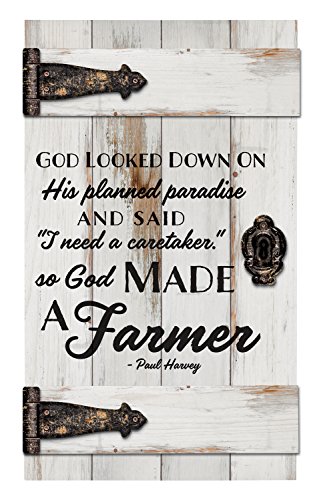 So God Made A Farmer White Distressed 14 x 24 Inch Solid Pine Wood Barn Door Wall Plaque Sign
