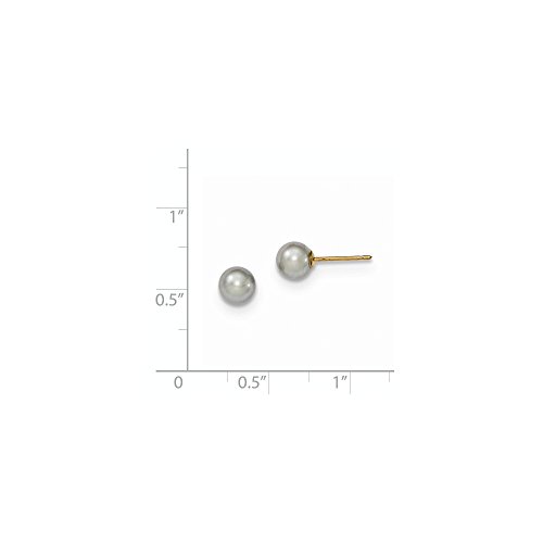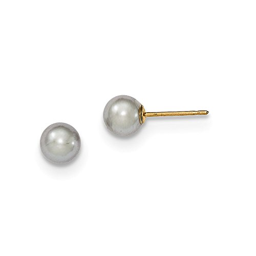 Solid 14k Yellow Gold 5-6mm Grey Round FW Cultured Pearl Stud Earrings