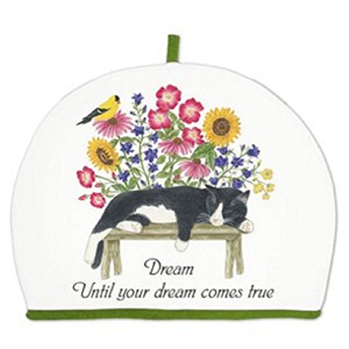 Studio : Alice's Cottage Publisher : Alice's Cottage Binding : Kitchen Product Description What could be better than a warm cuppa tea? Keep your favorite pot of tea warm in cheerful, charming style with this adorable cat nap tea cozy. Made in the USA from 100% cotton and designed by artist Alice Backman, this lovely tea cozy features a darling, black and white kitty cat napping peacefully on a garden bench. The phrase, "Dream until your dreams come true," are printed beneath the snoozing cat. The cozy measures 10 inches tall and 13 inches long and has extra thick padding to keep your teapot nice and toasty. What a delightful gift for any tea drinker or cat lover alike. 0