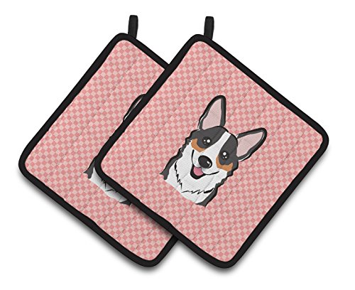 Caroline's Treasures Checkerboard Pink Corgi Pair of Pot Holders BB1255PTHD, 7.5HX7.5W, Multicolor