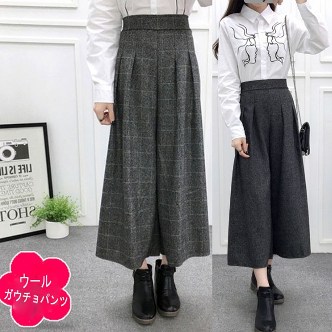 | 商品名 | ガウチョパンツ ロング レディース チェック柄 ハイウエスト ウールパンツ 秋冬パンツ Aラインパンツ フレアパンツ 防寒パンツ あったかい 2018春冬新作 |