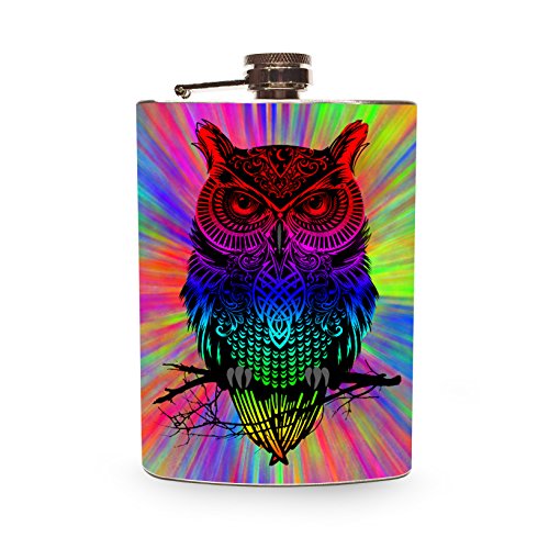 -. Title : Trippy Rainbow Owl Stainless Steel 8oz Flask Whiskey Drinking Flasks Game Games Hippie Life