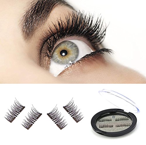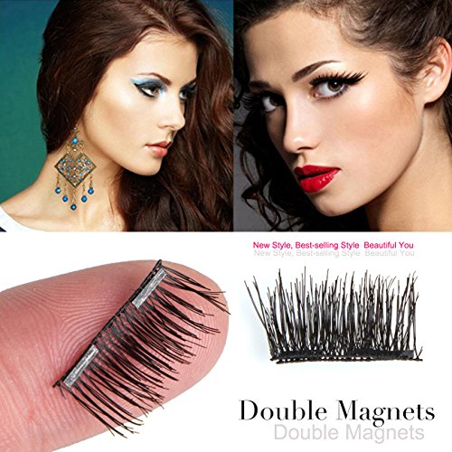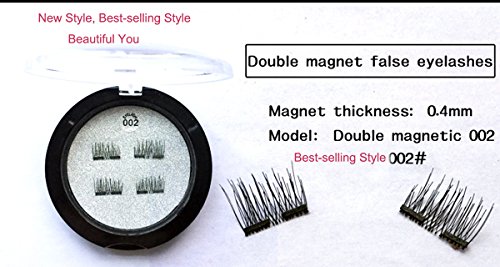 False Eyelashes Eye Makeup Dual Magnetic Ultra Thin 3D Fiber No Glue Handmade Reusable Natural Fiber Beauty Makeup ( 2 Pair/4 Pcs)