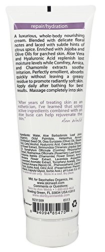 Other Ingredients: Aloe Barbadensis Leaf Juice (organic), Octyl Palmitate, Helianthus Annuus (Sunflower) Seed Oil, Olea Europaea (Olive) Oil, Stearic Acid, Cetyl Alcohol, Hyaluronic Acid, Calendula Officinalis Flower Extract, Simmondsia Chinensis (Jojoba) Seed Oil, Symphytum Officinale (Comfrey) Rhizome/Root Extract, Rosmarinus Officinalis (Rosemary) Leaf Extract, Anthemis Nobilis (Chamomile) Flower Extract, Arnica Montana Flower Extract, Lavandula Angustifolia (Lavender) Aromatic Extract, Tocopheryl Acetate, Citrus Aurantium Amara (Neroli) Oil, Phenoxyethanol, Caprylyl Glycol, Sorbic Acid, Citric Acid. (Preservatives Phenoxyethanol, Caprylyl Glycol, Sorbic Acid. pH Level 5.5 - 6.5)