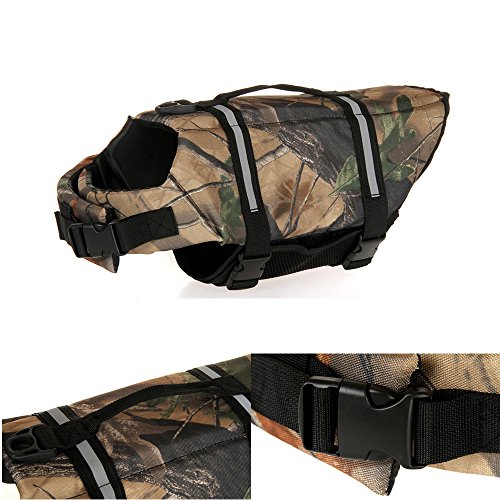 -. Binding : Misc. -. Brand : Pet Square -. Color : Camouflage -. EAN : 0611040381006 -. Feature : Feature:Adjustable and humanization design.The grap handle on the top for easy and quick grabbing.Adjustable side release buckles ensure the comfortable fit.Handle and multiple buckles improve security to the saver. / Floation Decive:The floation material ensure your pet safety in the water.Front float support keeps your dog's head above water. / Reflective and mesh design:Bright and reflective material provide you with high visibility and improved safety.The mesh design underbelly is easily to allow for quick drying and proper drainageis. / Weight and Measurement :light weight to allow comfort and reduce fatigue while swimming.Before you choose please measure Neck Girth,Chest Girth and Back Length.(Left pic.shows) / Size:"PLEASE CHECK THE SIZE CHART BEFORE YOU CHOOSE"(left pic shows).Available in 5 sizes, ranges from XS to XL. -. Label : Pet Square -. Manufacturer : Pet Square -. PackageQuantity : 1 -. ProductGroup : Pet Products -. ProductTypeName : PET_SUPPLIES -. Publisher : Pet Square -. Size : L -. Studio : Pet Square -. Title : Dog Life Jacket-Buoyant,Adjustable Pet Aquatic Reflective Preserver Float Vest (L, Camouflage) -. UPC : 611040381006