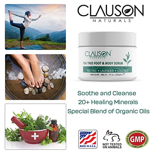 - ORGANIC & NATURAL - Clauson Natural Tea Tree Foot and Body Scrub is produced with the finest high-potent organic tea tree oil
