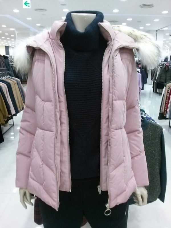 보온성과 스타일을 동시에~이중 지퍼여밈으로 디자인 역시 깜찍한 라쿤후드 숏 다운패딩^^