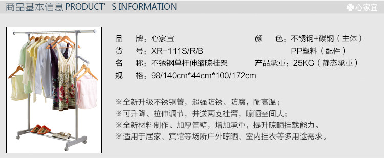 晒衣架类型: 落地伸缩式