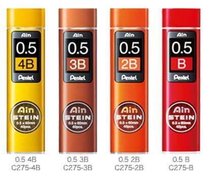Pentel Ain Stein Mechanical Pencil Lead, 0.5mm B,2B,3B,4B (40 Leads) 1 Each + Original 5 Colors Sticky Notes