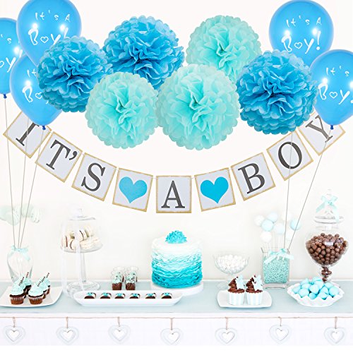-. Title : Coobey IT'S A Boy Banner Garland Bunting Tissue Paper Flower Pom Poms Balloon Party Photo Props for Baby Shower Decorations,17 Pieces