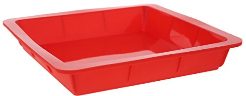 4 Piece Bakeware Set - Baking Molds - Nonstick Silicone Bakeware Set with Round, Square, and Rectangular Pans for Pies, Cakes, Loaf, and More - Red, Sizes: 10.5", 9.5", 10"