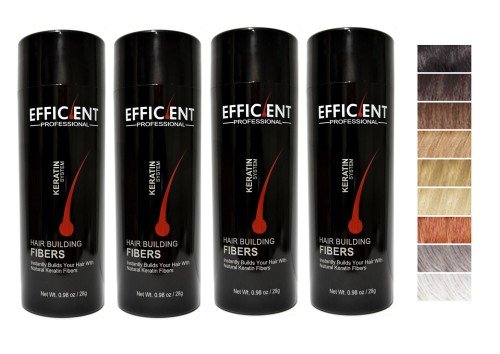 -. Binding : Misc. -. Brand : EFFICIENT -. Feature : EFFICIENT Brand Keratin Hair Building Fibers Net Wt. 28g / 0.98oz / Make your hair look fuller and thicker just in seconds! / Immediately eradicates physical appearance of thinning hair and bald spots. / Made from pure organic and natural protein, the exact same protein your organic hair is made from. / Works perfectly for both men and women, has no side effects. -. IsAdultProduct : 0 -. Label : EFFICIENT -. Manufacturer : EFFICIENT -. PackageQuantity : 1 -. ProductGroup : Beauty -. ProductTypeName : BEAUTY -. Publisher : EFFICIENT -. Studio : EFFICIENT -. Title : 4 of Efficient Keratin Hair Building Fibers, Hair Loss Concealer Net Wt. 12gm / 28gm