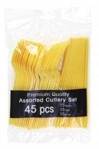 Yellow Party Supplies - Plastic Spoon Fork Knife Utensil Combo Set (Serves up to 15)