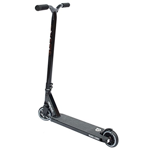 -. Feature : SKILL LEVEL: Beginner/Intermediate Rider, WEIGHT: 6.7 lbs / DECK: 4.5" W x 19.6" L with a C-Series Profile, European Certified Aluminum, Sealed/Welded Front and a Square Neck, HEADTUBE: Fully Integrated at 81 Degrees / COMPRESSION: Updated to Mini HIC for Easy Assembly, CLAMP: District Double Clamp, FORK: Aluminum Fork Cold Forged with Unique CNC'd Machined Details / BARS: 22" T x 22" W Aluminum Standard Sized Bars with an Internal Hexagon Profile for Extra Strength, GRIPS: District 135mm TPR Grips / WHEELS: 110 x 24mm Spoked Metal Core Wheels by Eagle Supply with 608ZZ bearings, BRAKE: District Steel Flex Brake