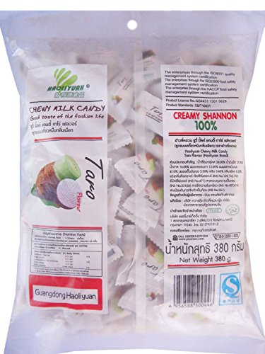 -. Feature : Haoliyuan Taro Milk Candy with Calcium. / Good taro smell, Sweet and oily taste. / Perfect for a delicious treat on the go, or a movie at home. / One of the most popular candy in southern asia. / Soft candy,which only a few companies in China are able to manufacture,is created through special techniques and finished in a soft texture.
