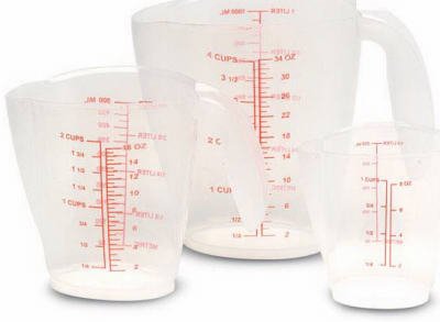 -. Feature : 3-piece nesting measuring-cup set includes 1cup, 2cup and 4cup sizes / Frosted pp-cup measure in-cup, ounces and metric equivalents / Good cook brand