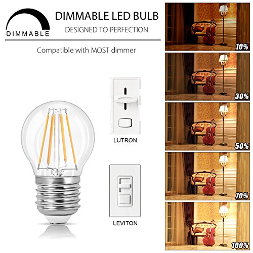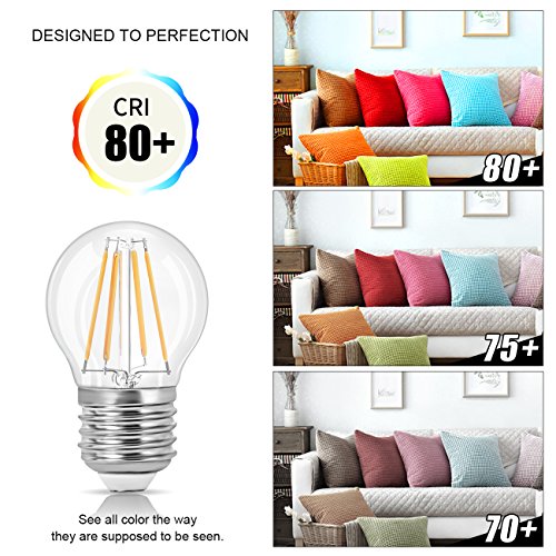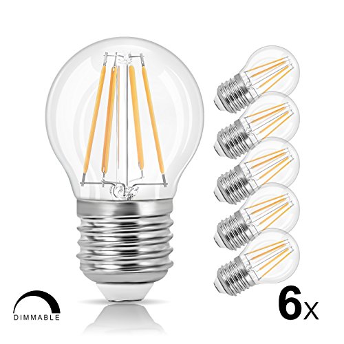 LVWIT G14 LED Globe Bulb E26 Base, Dimmable 4W(40W Equivalent) Edison LED Filament Bulb,2700K Warm White,UL-Listed, 6-Pack
