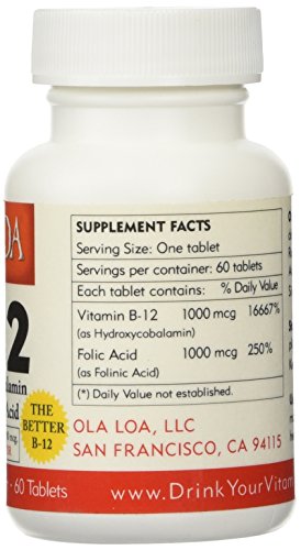 -. Binding : Health and Beauty -. Brand : Ola Loa -. EAN : 0680475166069 -. Feature : Typically this form of B12 is only available through a Nutrition Medical Doctor / This is the body's preferred form of vitamin B12 and is referred to as the ""natural transport factor"" for Cobalamin / Ola Loa's Hydroxy B12 provides greater absorption and better utilization than any other form of B12 -. IsAdultProduct : 0 -. Label : Ola Loa Products -. LegalDisclaimer : Actual product packaging and materials may contain more and different information than what is shown on our website. We recommend that you do not rely solely on the information presented and that you always read labels, warnings, and directions before using or consuming a product. Please see our full disclaimer below. -. Manufacturer : Ola Loa Products -. Model : B12F60 -. MPN : OA0014 -. NumberOfItems : 1 -. PackageQuantity : 1 -. PartNumber : OA0014 -. ProductGroup : Health and Beauty -. ProductTypeName : HEALTH_PERSONAL_CARE -. PublicationDate : 2014-12-22 -. Publisher : Ola Loa Products -. ReleaseDate : 2014-12-19 -. Size : 60 tabs -. Studio : Ola Loa Products -. Title : Ola Loa Products Sublingual Hydroxycobalamin B12, 60 Count -. UPC : 680475166069