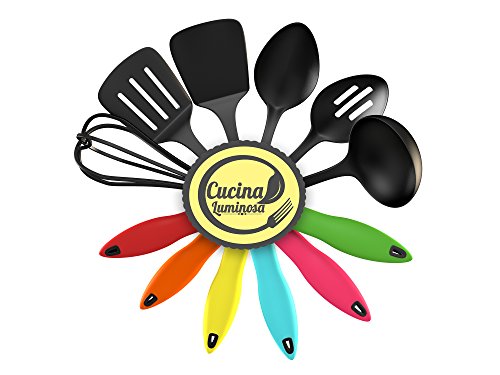 -. Title : Colorful Kitchen Utensil Set - Great For Non-Stick Cookware - Self-Supporting To Protect Your Countertops