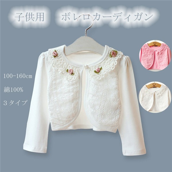 子供用 ガールズ 女の子 ボレロ カーディガン 長袖 レース キッズ 羽織 薄手 子供服 綿 発表会 結婚式 入園式 パーティー 披露宴 コンサート 演奏会 誕生会メイン素材:コットンカラー:type1 type2 type3サイズ:100 110 120 130 140 150 160子供用のボレロ・カーディガンです。レースやパールがついており、発表会や結婚式等のイベントにぴったりです。サイズは、実寸を測っているため多少の誤差はございます。実商品とPC画面では、多少見た目の色に違いがございます。初期不良の場合、未使用の商品のみ到着日から7日以内にご連絡頂ければご返金、交換対応させて頂きます。●商品が到着しましたら、必ず中の商品を確認していただき、商品の到着後、3-4日間以内に必ず弊社までご連絡ください。★いかなる理由であってもご使用後の返品交換は承れません。