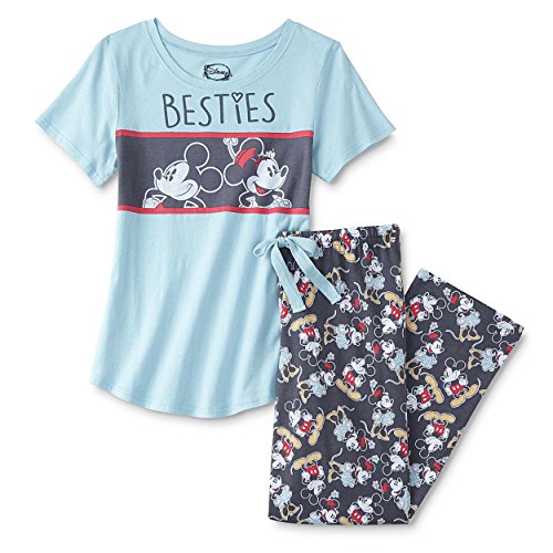 Get ready for bed in this comfy and cozy junior's plus size Mickey and Minnie Mouse pajamas set! Great for sleeping or lounging around, this sleep shirt and pants set features a ribbed-knit collar, short sleeves, an elastic waistband with a drawstring, and graphics of your favorite Disney characters, Mickey and Minnie Mouse! It's the perfect sleepwear choice for any Disney fan!Feature