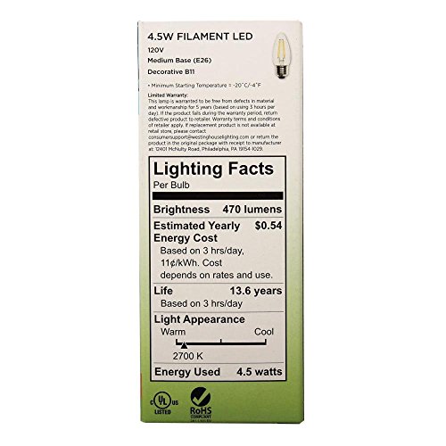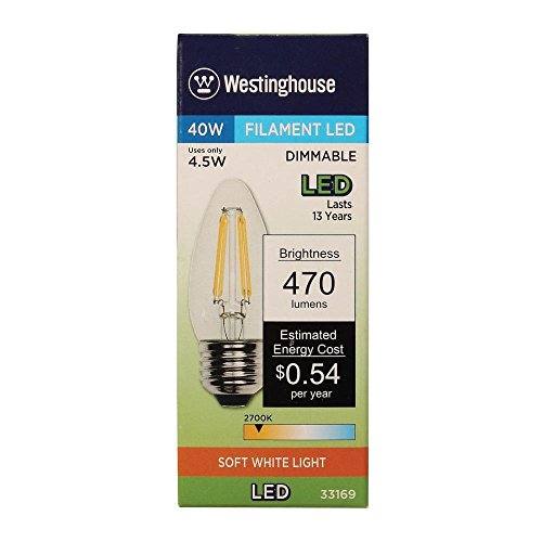 Westinghouse 3316920 B11 Dimmable Filament LED Light Bulb with Medium Base (6), Six Pack 40 Watt Equivalent Clear 33169, 6 Piece
