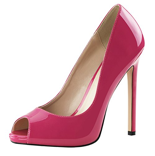 Womens Peep Toe Pumps Patent Hot Pink Shoes Platforms Stilettos 5 Inch Heels